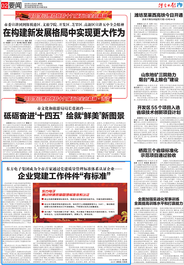 宿迁锦邦公共设施有限公司党建实现标准化,给全市国有企业提供了典范。市国资委党委副书记、副主任王洪祥表示,宿迁锦邦公共设施有限公司作为烟台市首个将党建工作纳入ISO9001党建标准质量管理体系进行系统化、标准化建设的先行实践企业,将为我市国有企业新时期党的建设创新提供鲜活的思路与经验,为市管企业今后在党建工作系统化、规范化、科学化建设做出了有益探索和创新。“这种模式完全可以尝试在全市国有企业进行复制、推广,以高质量党建引领国有企业实现高质量发展。”王洪祥如是说。